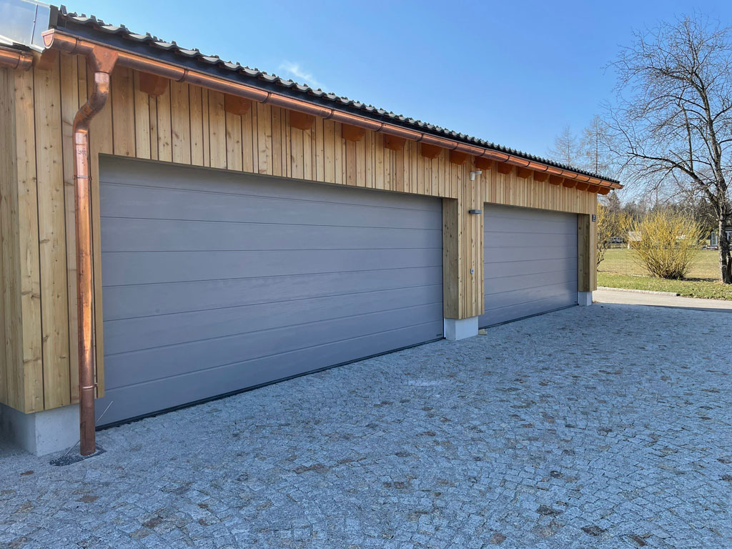 Seiten-Sektionaltore sind die ideale Lösung für besondere Einbausituationen. Anders als Schwing-, Sektional- und Garagen-Rolltore öffnet diese Torbauart nicht nach oben, sondern an die Seite. Ein besonderer Vorteil, wenn zum Beispiel die Garagendecke zur Aufbewahrung von Gegenständen (Dachaufbauten, Surfbretter o.ä.) frei bleiben soll oder das Torblatt aus baulichen Gründen (schräger Dachlauf, niedriger Sturz, störende Abflussrohre) nicht unter der Decke abgestellt oder montiert werden kann.